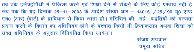Similarly, other state where this order yet not been implemented; followers of Electro Homoeopathy should approach to the respective state governments for the implementation of the said central government order.